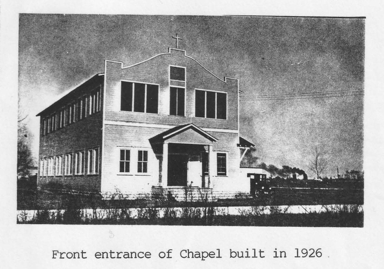 Father Perez and the people raised enough funds to build a two story building. The downstairs became the Chapel and the upstairs was the pastor's residence and classrooms for the religion classes. The building was completed November 8, 1926.